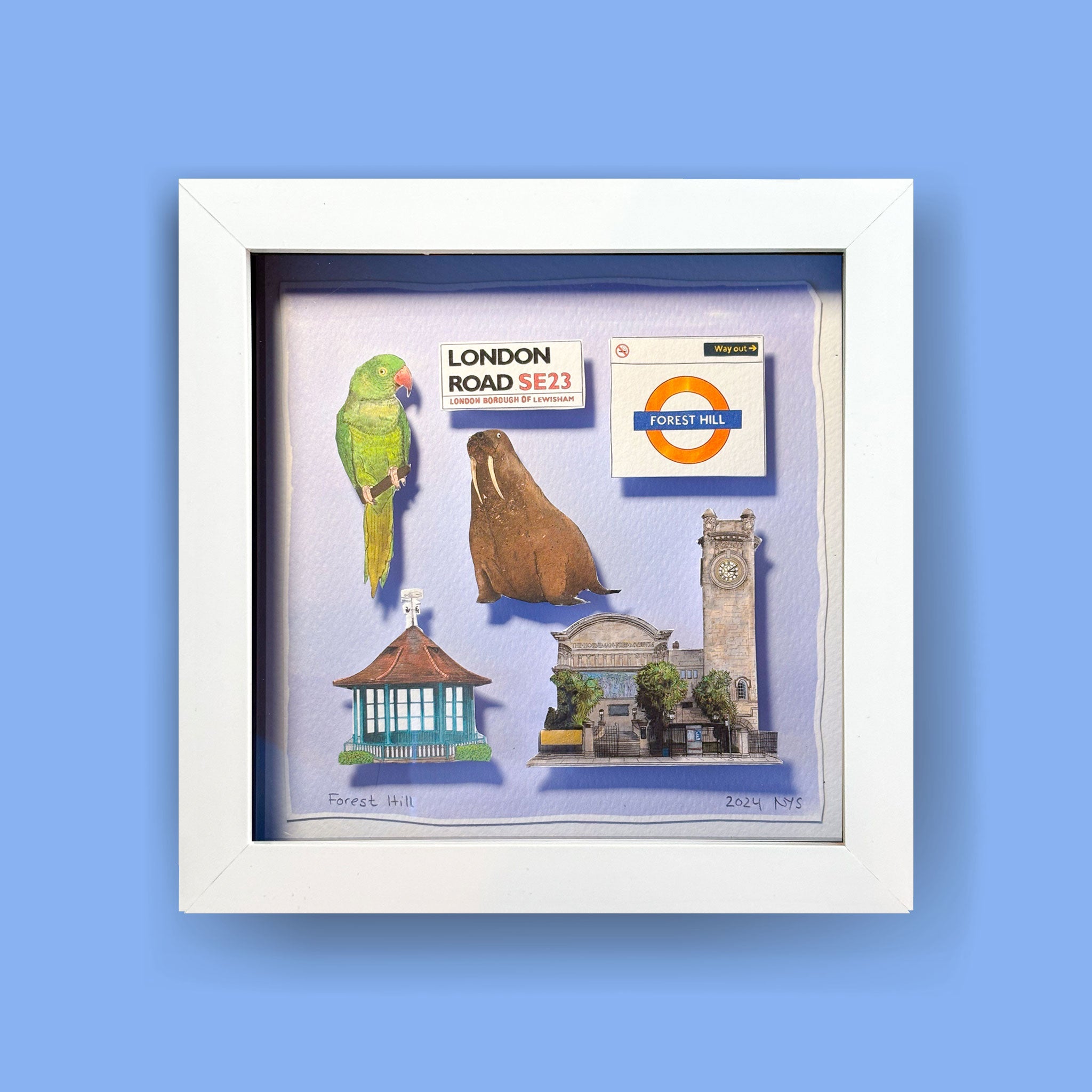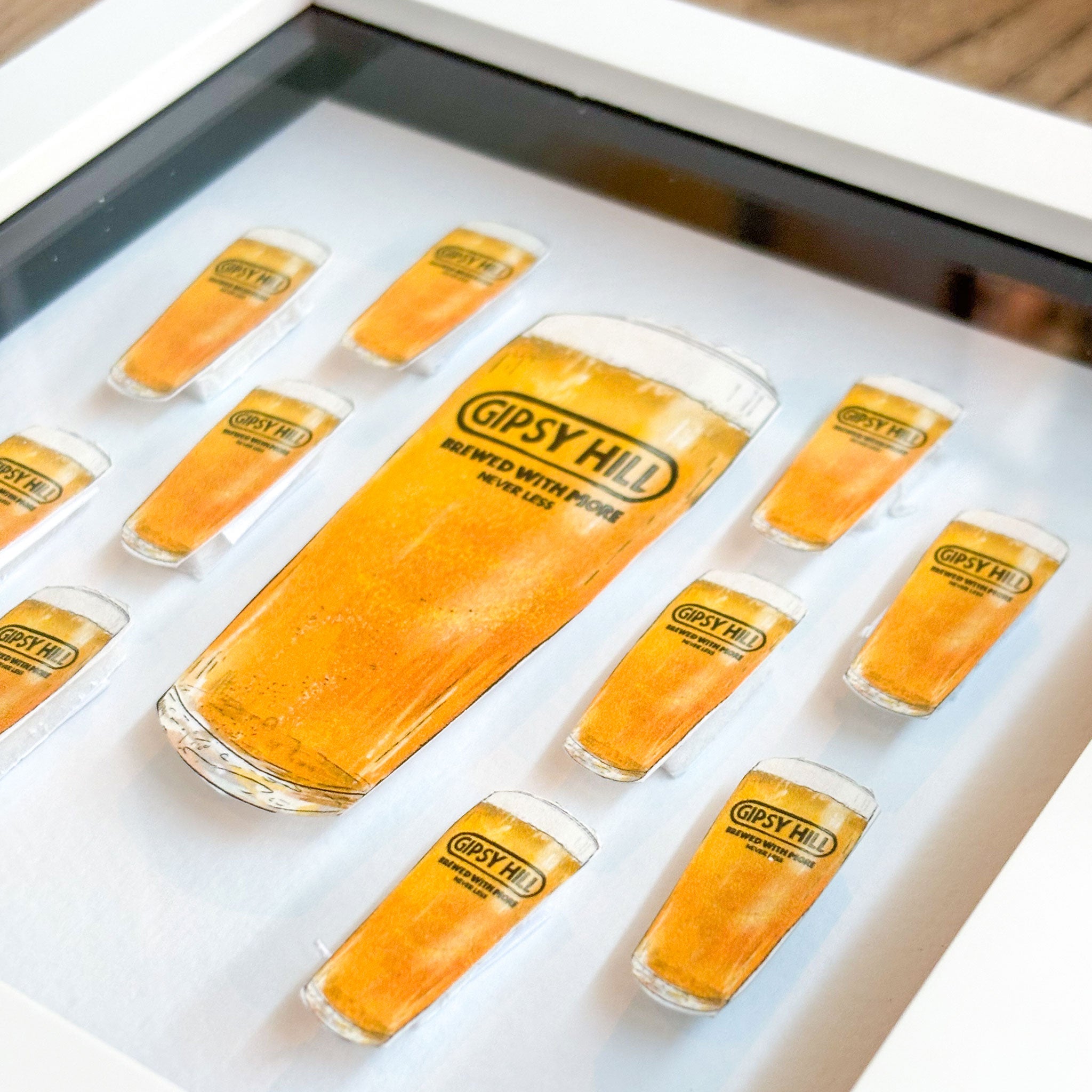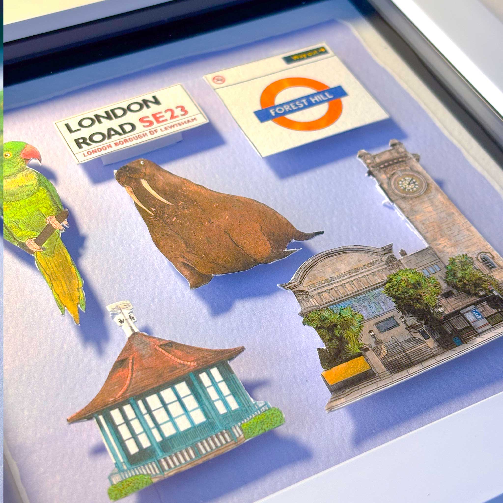 Each product is thoughtfully designed, printed, cut, and assembled by hand, so there may be slight variations in each framed piece. These subtle differences make every collage a truly one-of-a-kind piece.