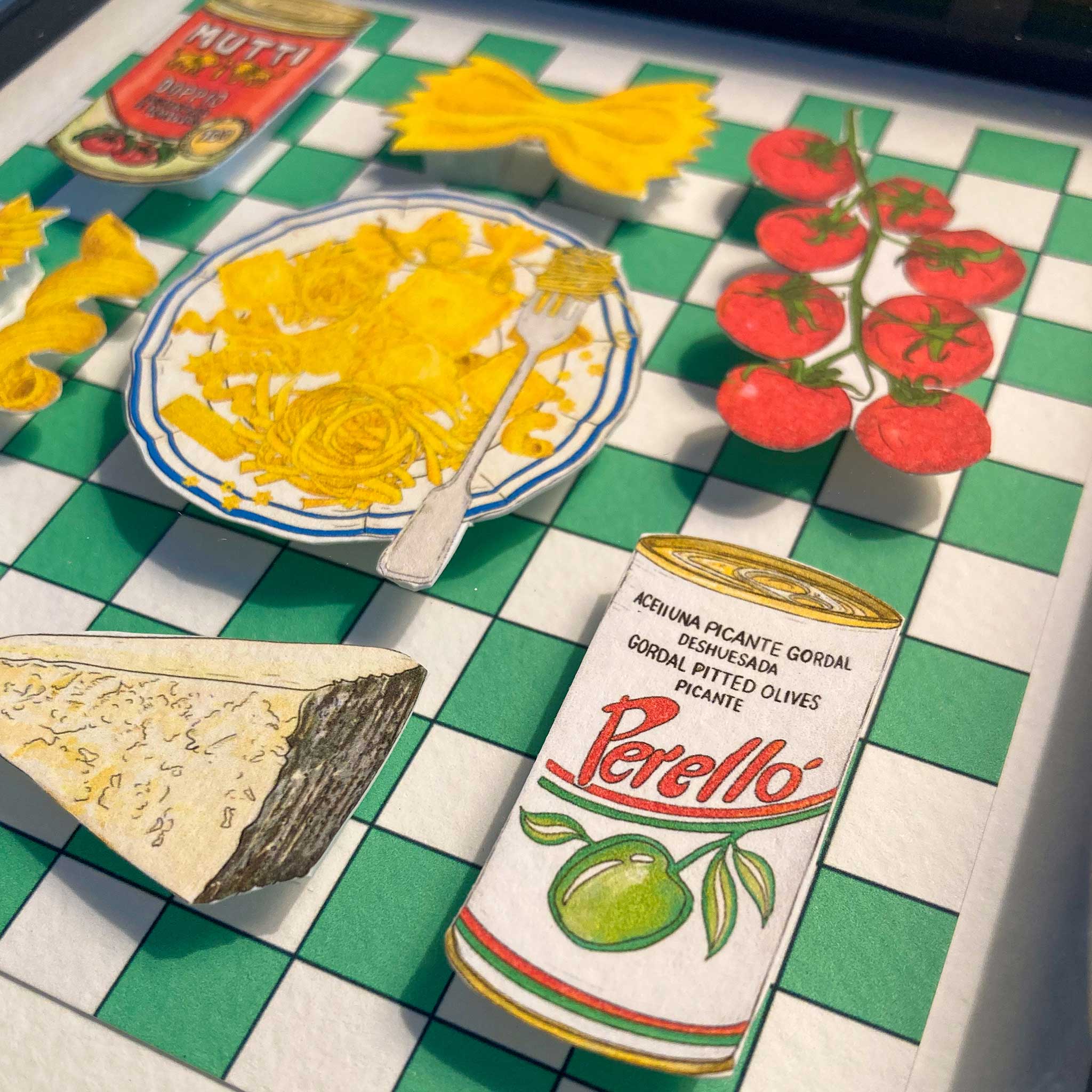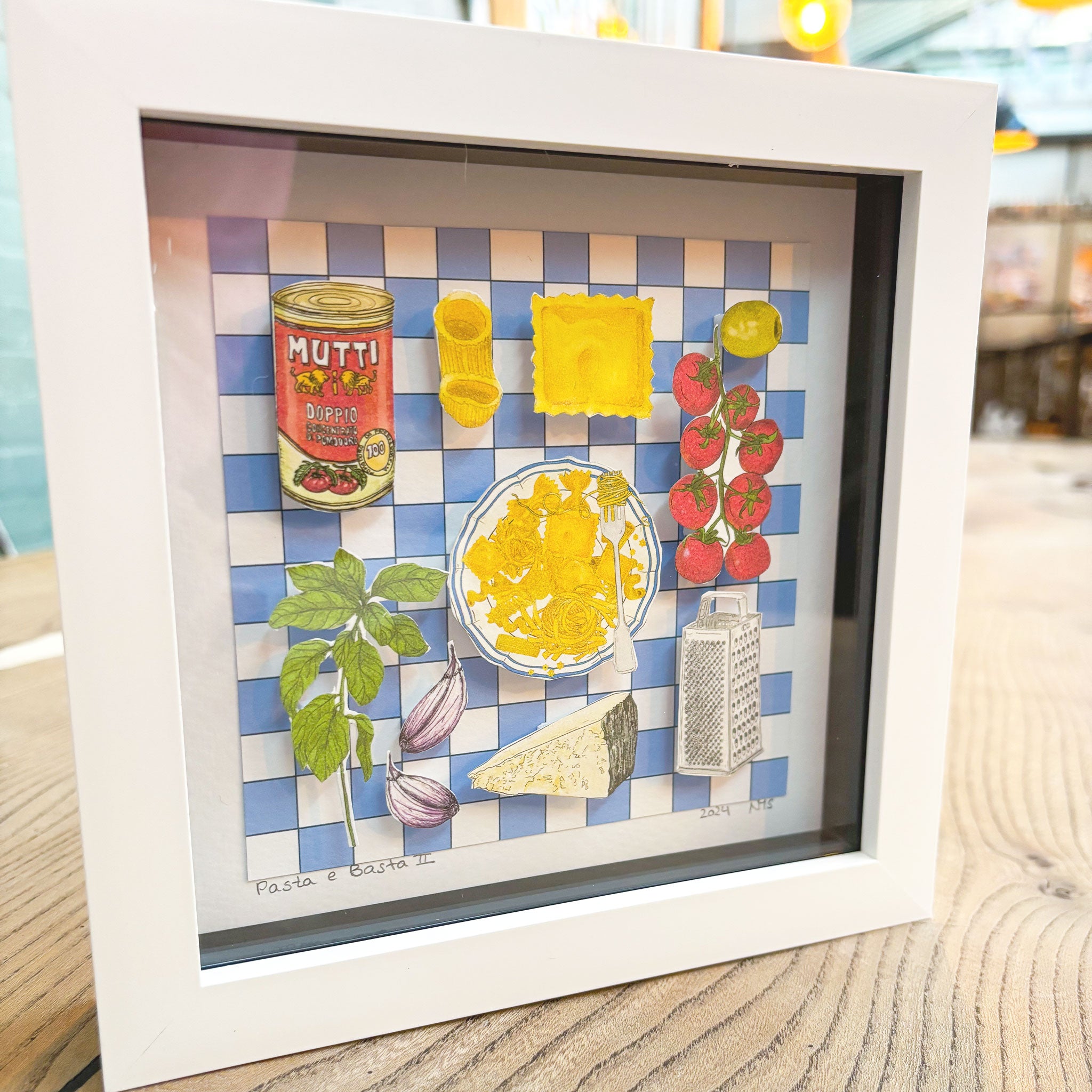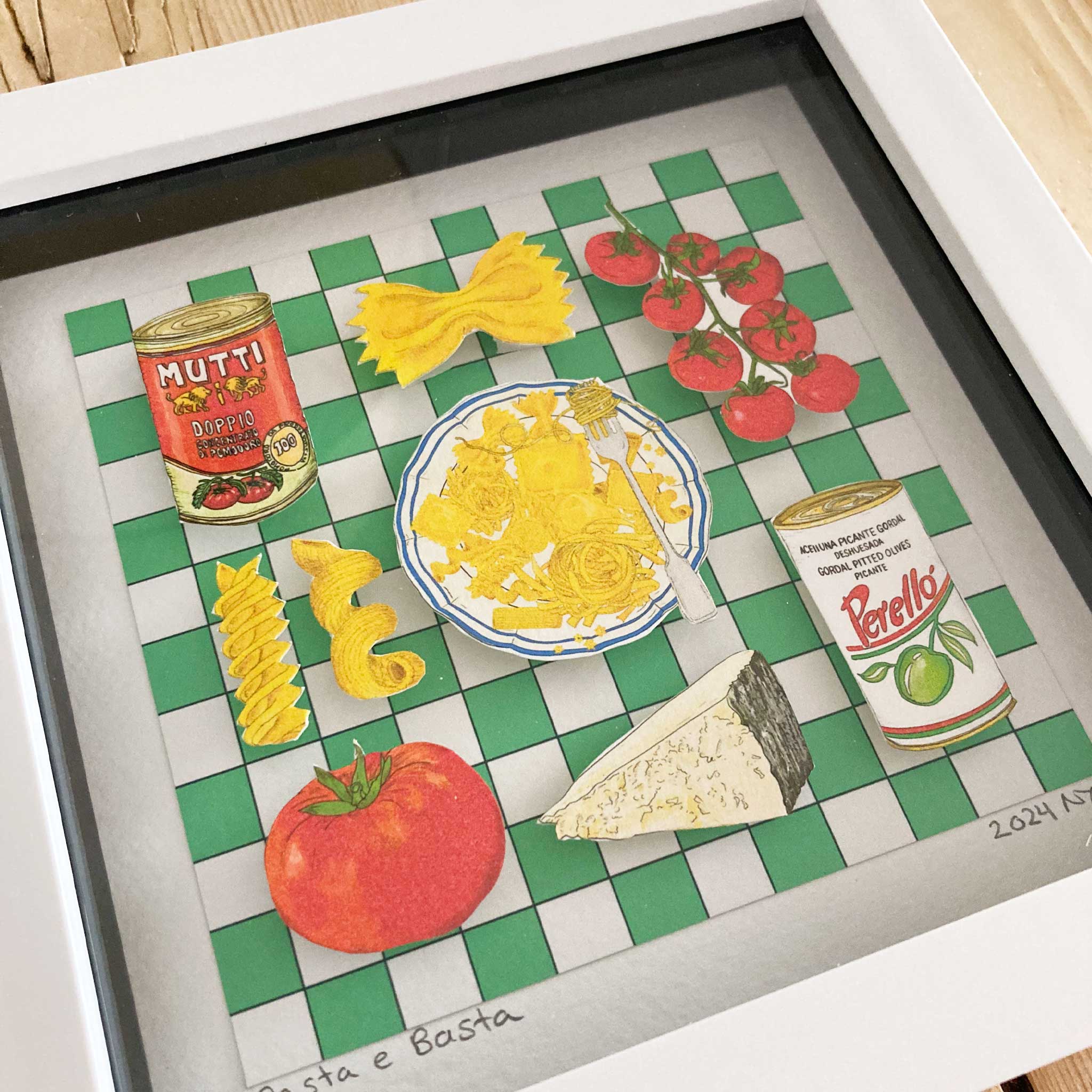 Discover the charm of tiny food art through my handmade collages—each one a little culinary gem, carefully crafted and lovingly made in very small batches in my little home studio.