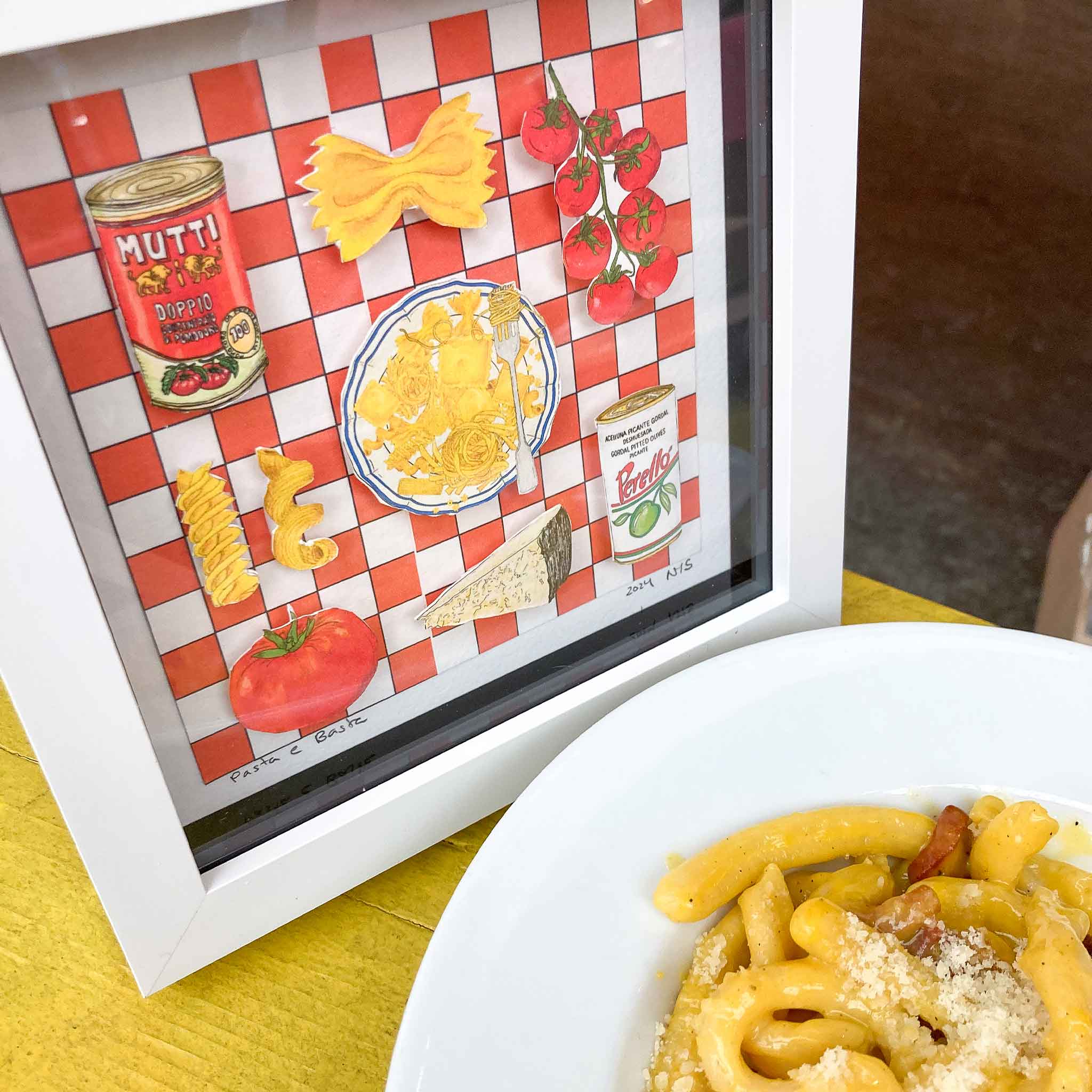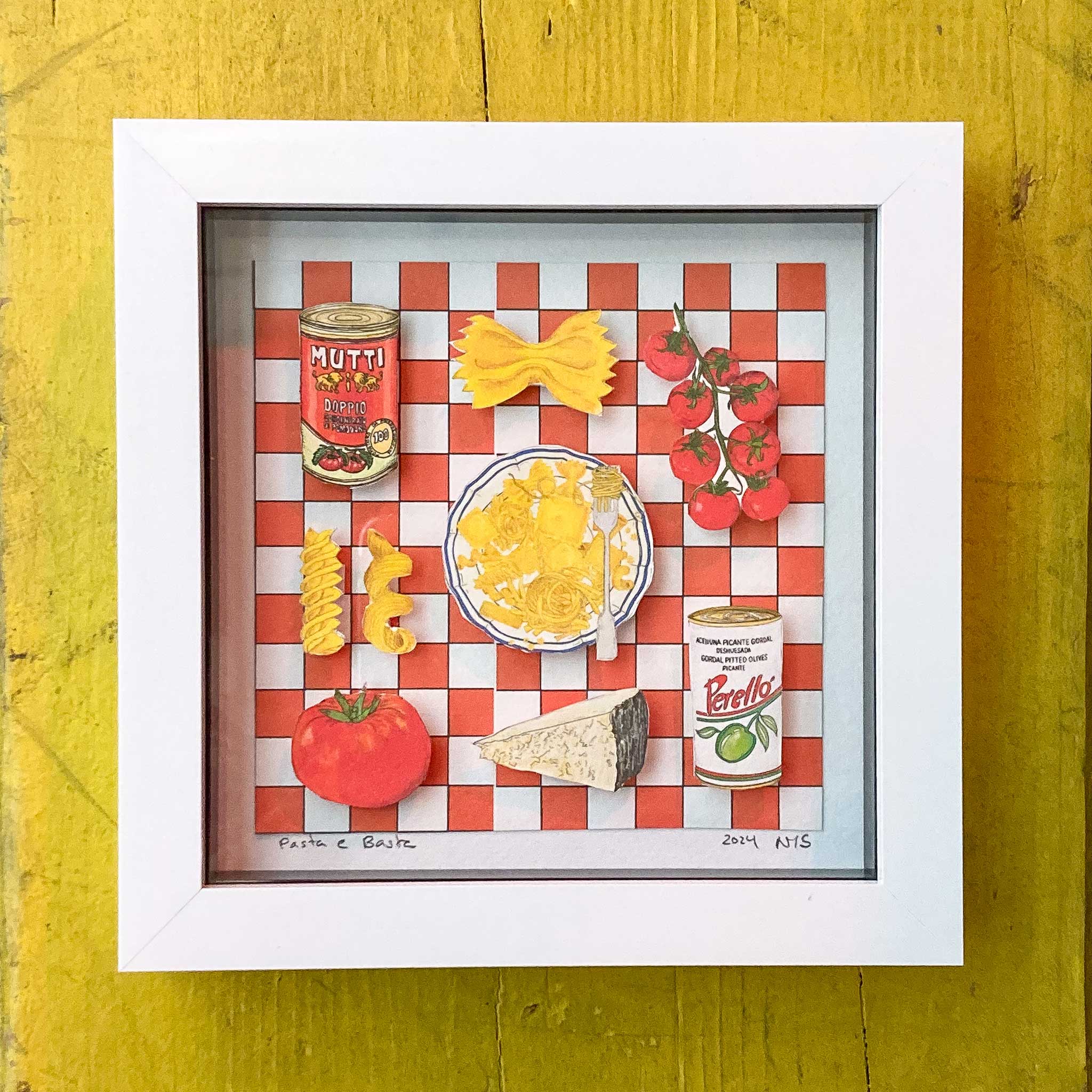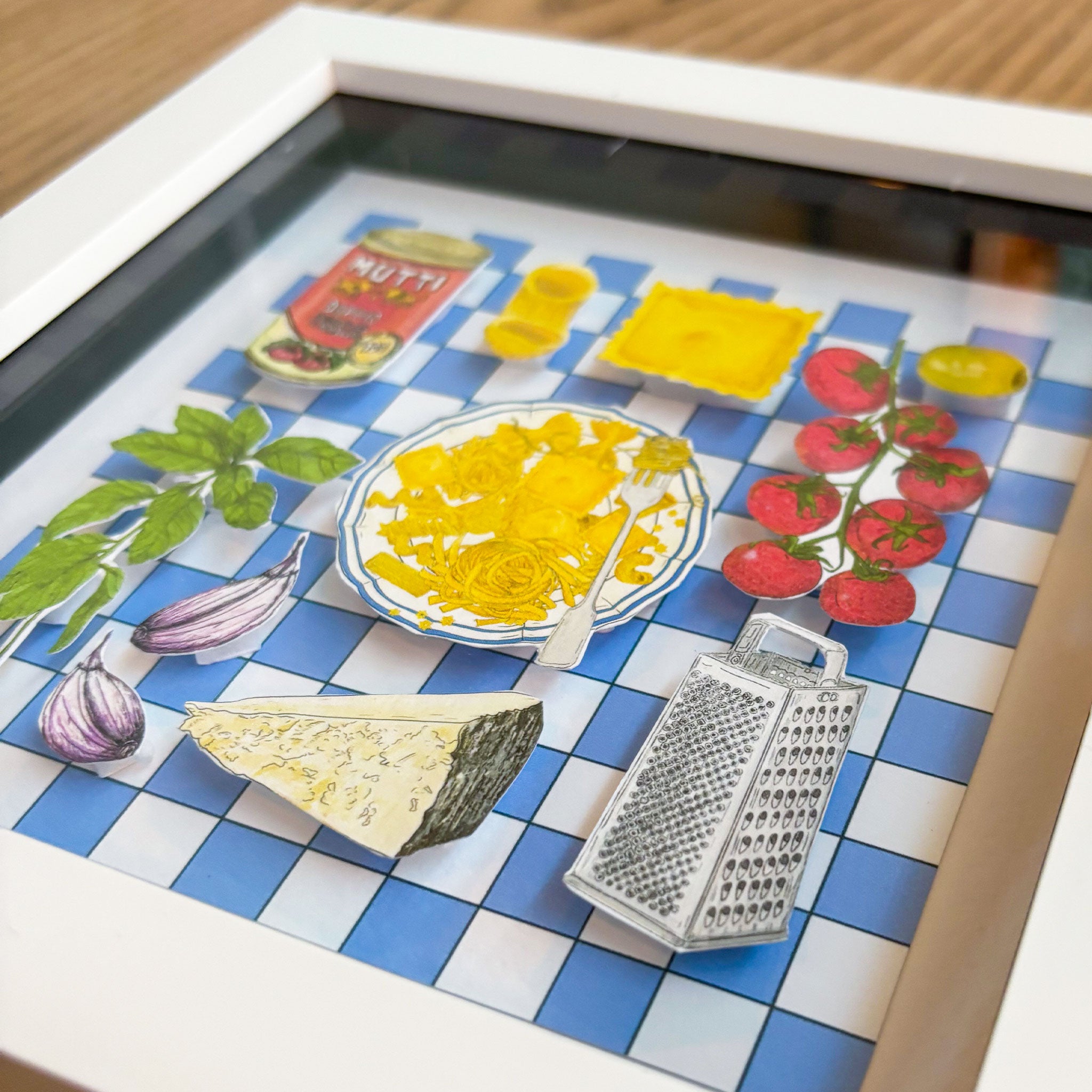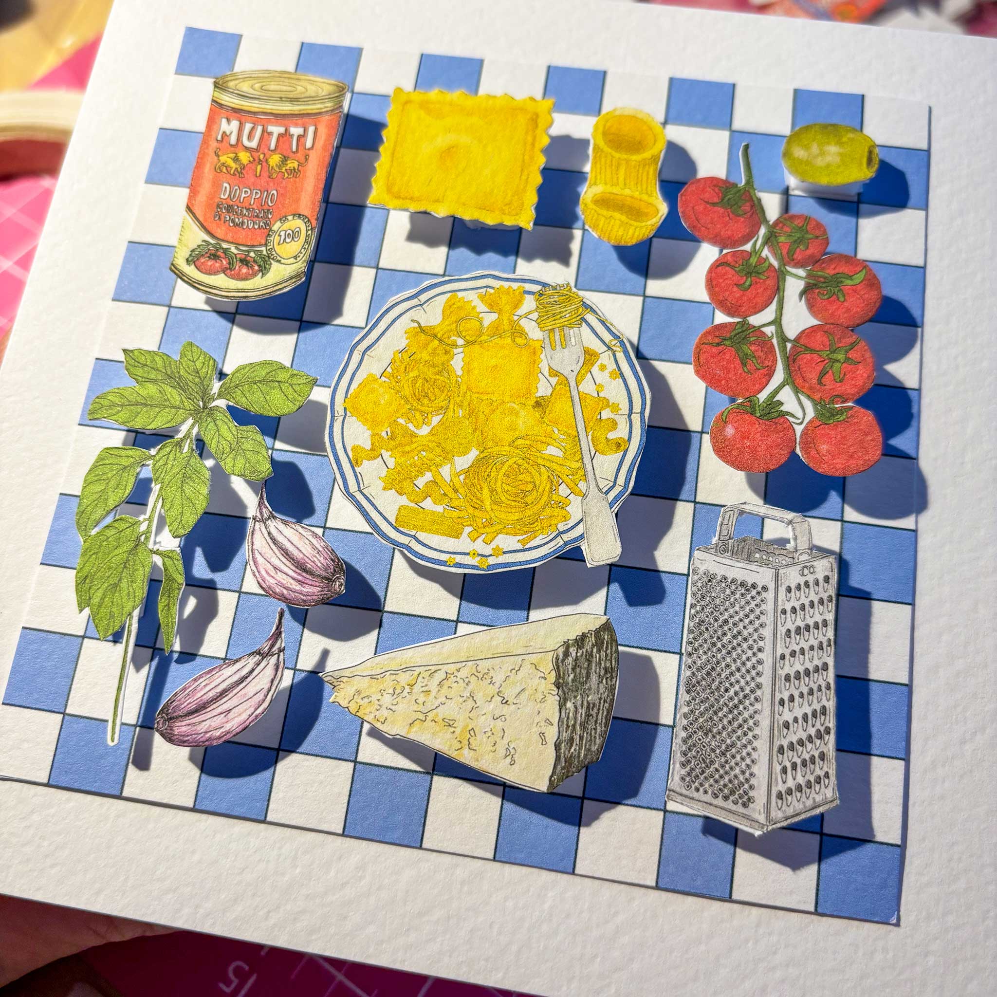 Discover the charm of tiny food art through my handmade collages—each one a little culinary gem, carefully crafted and lovingly made in very small batches in my little home studio.